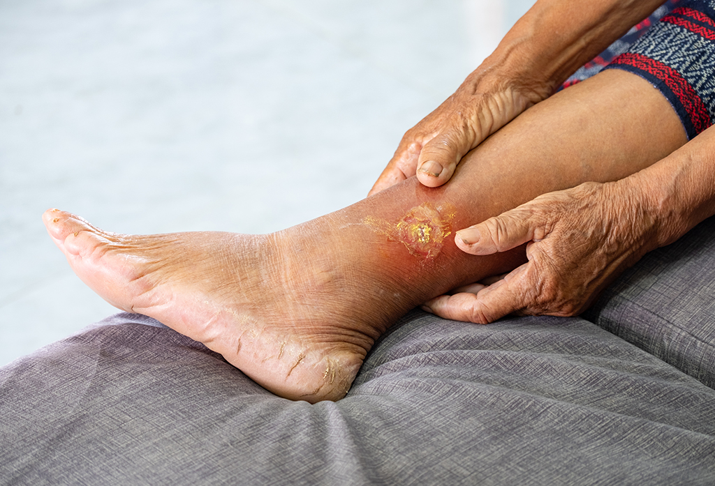 Leg ulcers are chronic wounds that fail to heal due to poor circulation in the lower limbs.